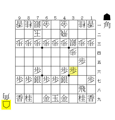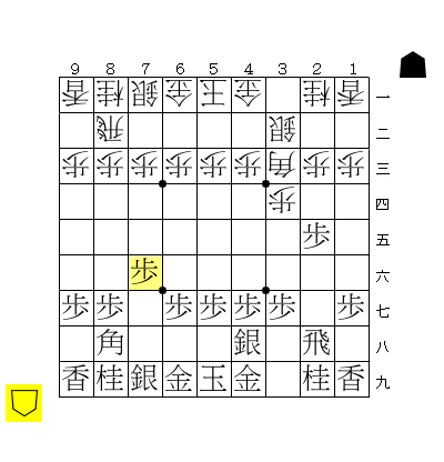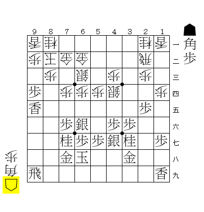 後手は金銀3枚の堅陣なので、先手は、左辺か右辺の金銀桂の数枚を攻めに参加させないといけません。もしくは角打ちのスキを作る手を考えないといけません。