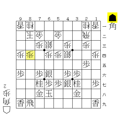 先手私。図で△88角成と来ました。二っ手損角換わりですね。先手としてはラッキータマゴうみ。