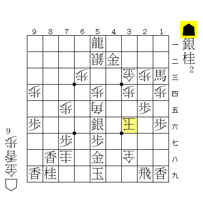 図で▲56桂が悪手。△45玉や△53玉は先手勝ちですが、△56銀を見落としていました。これで大逆転。