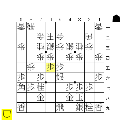 先手が▲65歩から仕掛けてきました。後手は右玉がほぼ完成して△13角さえ上がれれば駒組の頂点なのですが、図の局面でのソフト評価値は先手+800。そんなに後手わるいのか。実際に、このあと6筋からボコられて劣勢は意識しました。