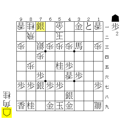 代えてソフト推奨は▲11ト。香車を補充するのと、次の▲21角からの馬づくりをみています。